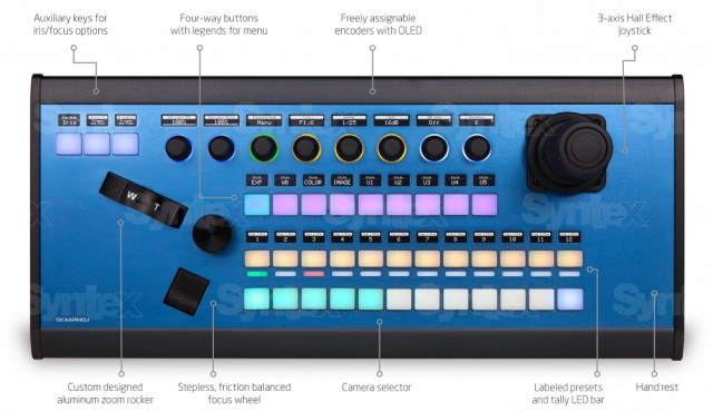 PTZ Extreme je velice flexibilní řešení pro ovládání např. PTZ kamer, sliderů, jízdy apod.: levá část pultu je osazena profesionálními ovladači zoomu a zaostření z hliníkové slitiny, pravá hostí precizní joystick s magnetickými (Hall Effect) snímači. Spodních 12 tlačítek je většinou využíváno pro volbu cílové kamery. Všechna tlačítka a otočné ovladače jsou doplněny o dokonale čitelné OLED displeje zobrazující funkce/hodnoty. Obrovskou devizou spol. Skaarhoj je kontinuální vývoj rozhraní UniSketch, které se neustále rozrůstá o podporu nových zařízení vč. produktů Blackmagic Design, Panasonic, JVC, IO Industries, PTZOptics, Atomos, ARRI, AJA, Sony, NewTek, vMix, protokolů Visca, RS-422, IP nebo LANC a mnoha dalších!