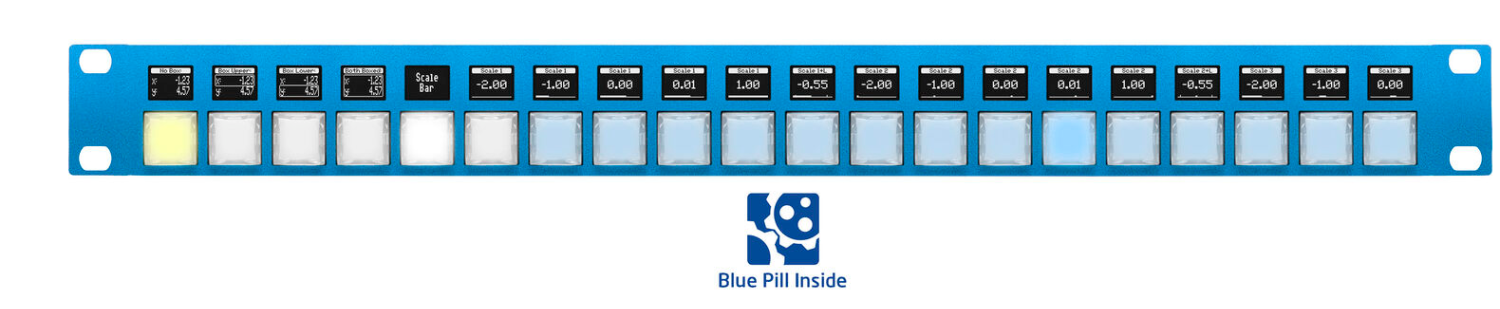SKAARHOJ Rack Pro 1 s technologií Blue Pill je kompaktní ovládací panel pro montáž do racku o výšce 1U, určený pro profesionální vysílací a produkční prostředí. Je vybaven vysoce kvalitními tlačítky NKK pro přesné hmatové ovládání a integrovanou technologií Blue Pill, díky čemuž umožňuje plynulé propojení více zařízení a snadnou konfiguraci prostřednictvím webového rozhraní.