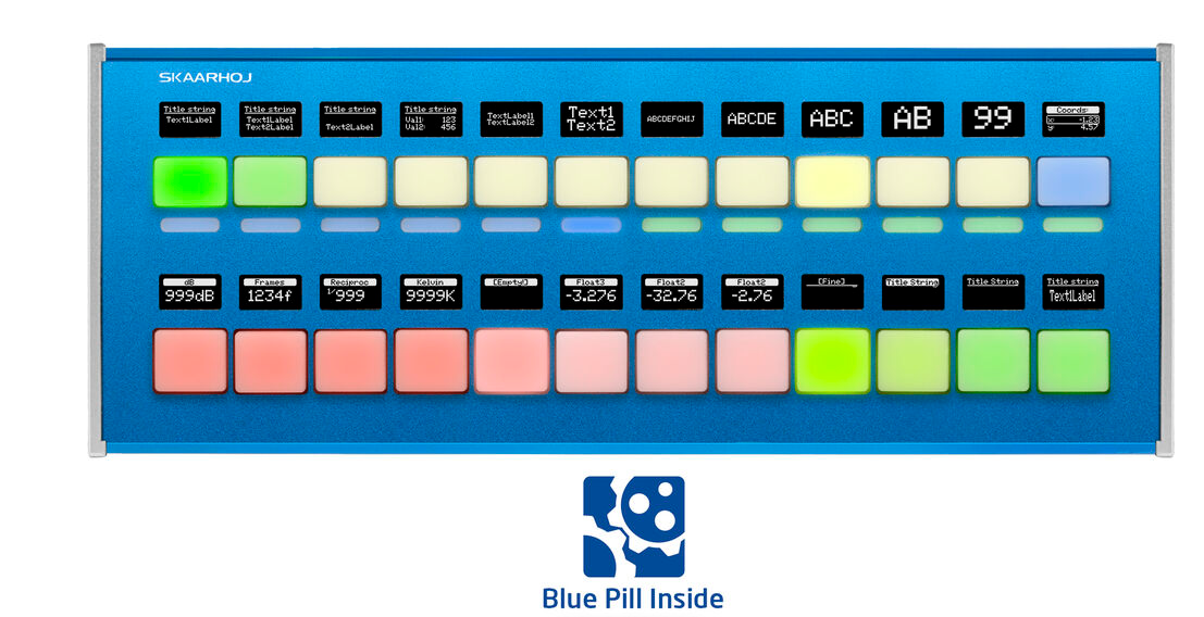 SKAARHOJ XPoint 24 s technologií Blue Pill Inside je kompaktní modulární ovládací panel vybavený 24 programovatelnými čtyřsměrnými tlačítky RGB s OLED displeji a integrovaným procesorem Blue Pill. Je navržen pro pracovní postupy v oblasti televizního vysílání a živé produkce a nabízí flexibilní přizpůsobení, připojení PoE a intuitivní vizuální zpětnou vazbu v prostorově úsporném provedení.