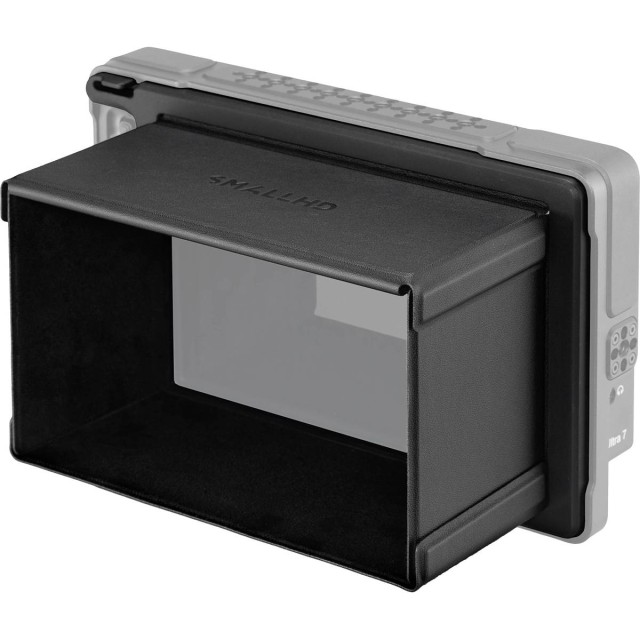 Skládací sluneční clona SmallHD kompatibilní s monitorem Ultra 7 se upevňuje pomocí magnetických klapek.