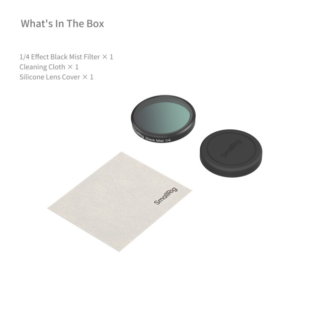 Filtr SmallRig 1/4 Effect Black Mist pro DJI Osmo Action 6 6086 je speciálně navržen pro DJI Osmo Action 6. Tento filtr je vyroben z vysoce kvalitního skla Rainbow s vysokým obsahem oxidu hlinitého a nabízí vynikající odolnost proti nárazům a opotřebení. Účinně eliminuje rozptýlené světlo a zajišťuje konzistentně ostrý a vysoce kvalitní obraz. Balení obsahuje filtr 1/4 black mist, silikonový kryt objektivu a čisticí hadřík.