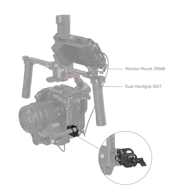 SmallRig 15mm ARRI lokalizační svorka s jednou tyčí 4171 je určena k upevnění na rukojeť, klec, desku pomocí lokalizačního šroubu ARRI 3/8''-16 a k dalšímu zajištění pomocí knoflíku s palcem 15mm jednoduché tyče pro upevnění následného zaostřování, mikrofonu, monitoru atd.