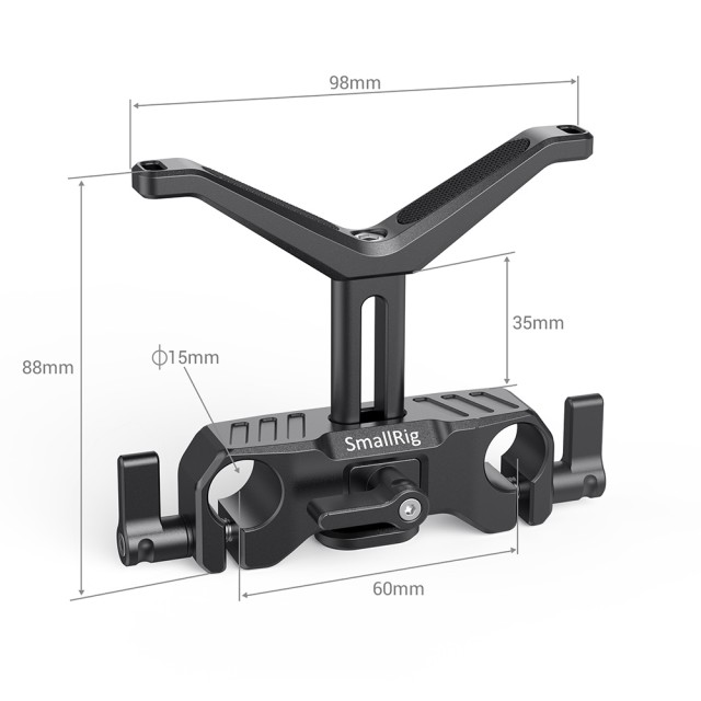 Univerzální podpěra objektivu SmallRig 15mm LWS BSL2680 je navržena tak, aby odstranila zátěž z držáku objektivu fotoaparátu, když je fotoaparát namontován na samostatně dostupných 15mm tyčích LWS. Podpěra objektivu nabízí 34,5mm vertikální nastavení, které vyhovuje většině objektivů. Středový sloupek se připevňuje k podpěře tvaru Y, která je na každé straně vybavena otvory pro popruh pro další zajištění. Výšku lze nastavit pomocí rychloupínacího knoflíku bez použití nářadí. Podpěra objektivu je kompatibilní s objektivy o průměru až 150 mm.