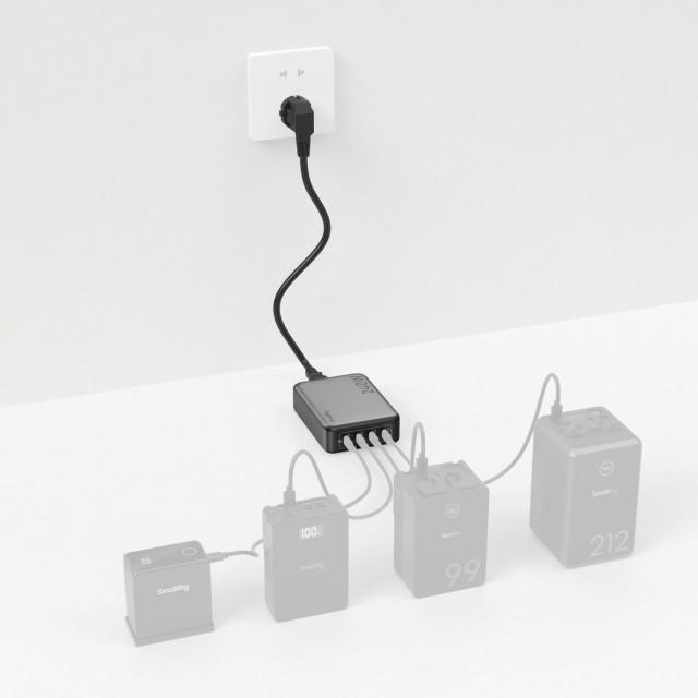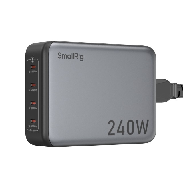 SmallRig 240W 4portový napájecí adaptér PD (standard EU) 4752 je vysoce účinné a všestranné nabíjecí zařízení s celkovým výstupním výkonem 240 W. Tato nabíječka je vybavena čtyřmi porty USB-C a podporuje současné nabíjení více zařízení, jako jsou baterie s konektorem V, baterie NP-F, dobíjecí baterie fotoaparátů, chytré telefony, počítače, fotoaparáty a další, takže je vhodná pro různé scénáře použití. Všechny porty podporují rychlé nabíjení, přičemž každý port podporuje výstup až 140 W (max.) prostřednictvím PD3.1, což poskytuje silnou podporu pro zařízení s vysokým výkonem a výrazně zvyšuje účinnost nabíjení. Každý výstupní port je vybaven ochranou proti zkratu a nadproudu, která zajišťuje bezpečné používání. Díky kompaktním rozměrům nabíječky je navíc vhodná pro cestování i každodenní používání.