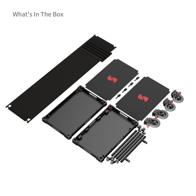 Modulární rozšiřující systém zvyšuje flexibilitu pracovního postupu a je vybaven několika sýrovými deskami (včetně otvorů se závitem 1/4"-20 a 3/8"-16, 3/8"-16 lokalizačních otvorů ARRI) a čtyřmi 5/8" dětskými kolíky. Tato konstrukce umožňuje bezproblémovou integraci ramen monitoru, držáků zvuku, držáků sluneční clony a dalších prvků, takže je ideální pro režisérský monitoring, pracoviště DIT, střihové stanice a další profesionální sestavy.