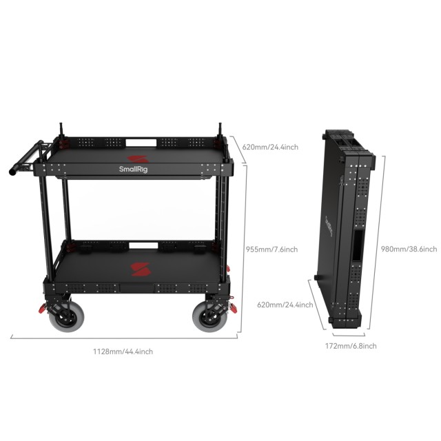 SmallRig 36" Lehký produkční vozík pro videokamery MD4573 je profesionální mobilní pracovní stanice určená pro filmaře a tvůrce obsahu, kteří vyžadují efektivitu, odolnost a všestrannost na place, což usnadňuje časté přemisťování a rychlé nasazení během natáčení. Vozík je zkonstruován z leteckého hliníku a průmyslových materiálů a jediný člen štábu jej sestaví nebo složí za pouhých 5 minut. Skládací konstrukce se pro snadnou přepravu složí na výšku pouhých 17,2 cm, takže se hodí jak do městských studií, tak na odlehlá místa natáčení.