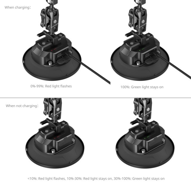 Přísavka je vyrobena převážně z odolného nitrilového kaučuku a udržuje vynikající těsnost i při extrémních teplotách (-25 °C až 60 °C / -13 °F až 140 °F) bez deformace. Nabízí silnou přilnavost a podporuje vertikální / boční montáž až do 40 kg (88 lb) a horizontální montáž až do 60 kg (132 lb). Pro použití ve vozidlech doporučujeme použít přiloženou bezpečnostní šňůru, vyhnout se zatížení přesahujícímu 5 kg (11 lb), udržovat rychlost vozidla pod 80 km/h (50 mph) a vyhýbat se hrbolatým silnicím. Dále doporučujeme každé dvě hodiny zkontrolovat přilnavost.