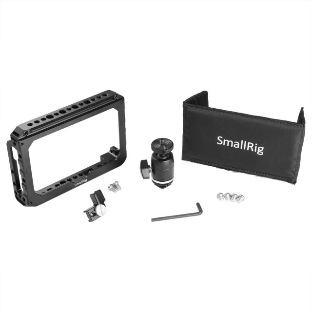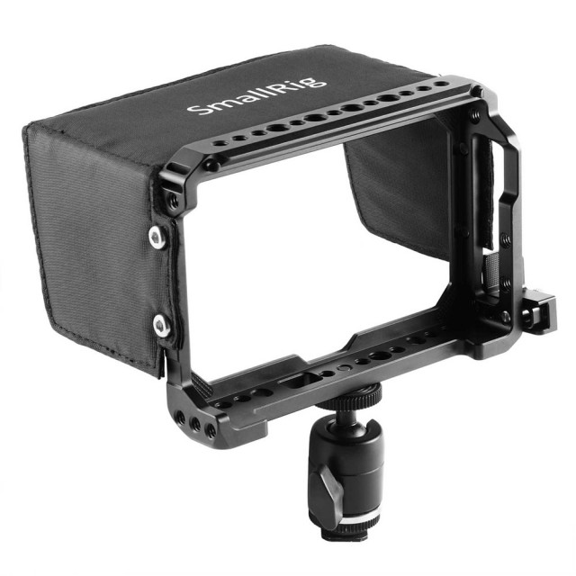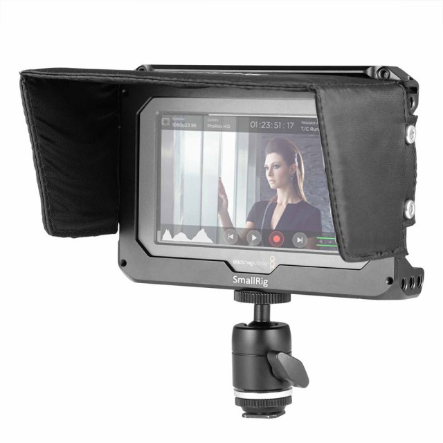 SMALLRIG Monitor Cage Accessory Kit 1981 is a 5’’ monitor cage with sunhood. This is a great way to protect your Blackmagic Video Assist monitor. Made of CNC machined aluminum, the cage is quite lightweight and solid, and you will still have access to all the features of the monitor. It includes numerous 1/4”-20 & 3/8”-16 threaded holes for many attachment options. An integrated and anti-twisted NATO rail on top for attaching NATO standard accessories directly. The included HDMI clamp for protecting your camera HDMI port. Besides, adding a sunhood is perfect to prevent direct sunlight for a good visibility of the screen’s image. Additionally, we considerately offer a SmallRig monitor support ball head 1875 for easy mounting.