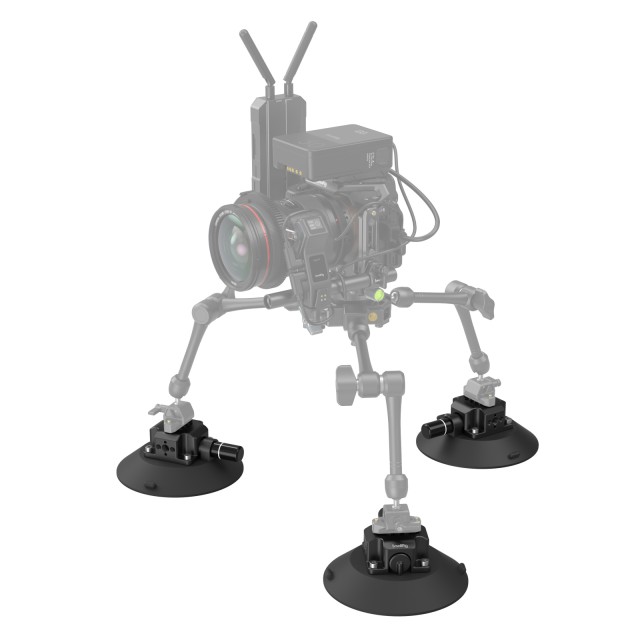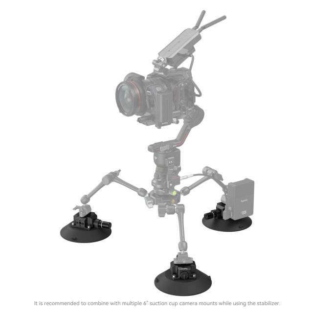 SmallRig 6″ přísavný držák kamery 4114 se skládá z přísavného držáku, přísavky, ruční pumpy a protiprachového krytu. Přísavný držák vyrobený z robustního materiálu NBR odolného proti opotřebení může pracovat při teplotách od -20 °C do 60 °C. Nelze jej snadno deformovat a vyznačuje se vynikající vzduchotěsností, je vhodný pro čisté, suché a hladké povrchy. Díky výkonné sací síle má maximální horizontální sání 80 kg a maximální vertikální sání 60 kg. Držák s přísavkou z hliníkové slitiny je dodáván s montážními body pro příslušenství: otvory se závitem 1/4"-20, otvory se závitem 3/8"-16 a polohovacími otvory ARRI 3/8"-16. Podporuje připevnění magických ramen (3873, 3874, 2906B, 2070B, 2115C atd.) pro lepší rozšiřitelnost. Pokud se nepoužívá, nasaďte protiprachový kryt, aby se zabránilo prášení a prodloužila se tak životnost.