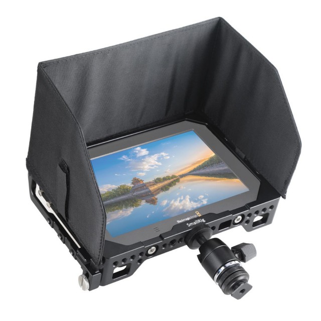 Klec pro 7'' monitor SMALLRIG se sluneční clonou pro Blackmagic Video Assist 1988 vám zajistí snadné monitorování rekordéru Blackmagic Video Assist 4K. Tato klec se snadno a rychle instaluje, je vyrobena z CNC obráběného hliníku, je lehká a pevná a přitom máte stále přístup ke všem funkcím monitoru. Tato klec na monitor obsahuje mnoho otvorů se závity 1/4"-20 a 3/8"-16 pro různé možnosti montáže. V horní části je integrovaná lišta NATO s ochranou proti zkroucení pro přímé upevnění příslušenství standardu NATO. Kromě toho vám poskytujeme svorku HDMI, která chrání port HDMI kamery. Sluneční clona se používá k zabránění odrazu světla od oslnění, aby byl obraz na obrazovce dobře viditelný. Kromě toho jsme zlidštili a poskytli vám ballhead SmallRig 1875 pro snadnou montáž monitoru.