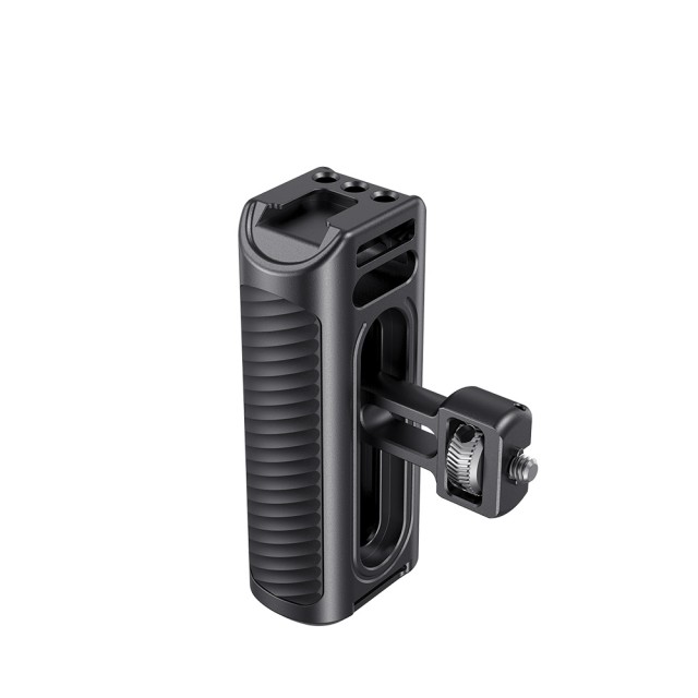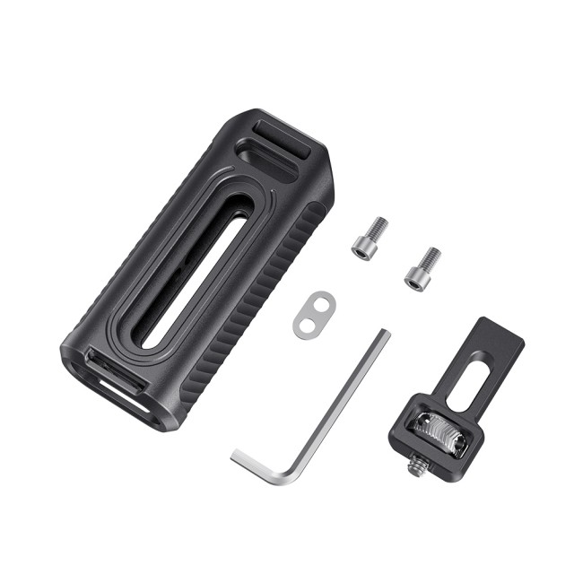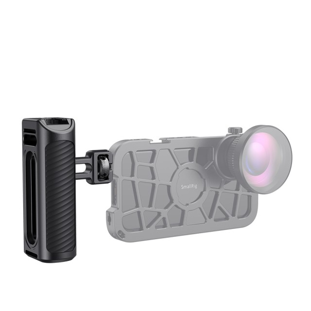 Hliníková boční rukojeť SmallRig pro klec na chytrý telefon HSS2424 je navržena tak, aby se hodila ke klecím na telefony SmallRig a zlepšila komfort držení pro trvalejší a stabilnější snímání telefonu. Je kompatibilní s klecemi na mobilní telefony SmallRig Pro, jako jsou 2775, 2776 atd. a univerzálními klecemi SmallRig, jako jsou CPU2391B, 2791 atd. Vestavěný klíč lze použít k nastavení výšky rukojeti a také k utažení zajišťovacího šroubu. Je vybavena třemi standardními otvory se závitem 1/4-20 a studeným držákem na horní straně pro upevnění příslušenství, jako je mikrofon nebo LED světlo. Rukojeť je kompatibilní s ručním popruhem SmallRig PAC2456 pro bezpečnější a stabilnější snímání z ruky. Váží pouhých 224 g a má hliníkové tělo s protiskluzovým silikonovým potahem, který zajišťuje pohodlné držení při dlouhodobém používání.