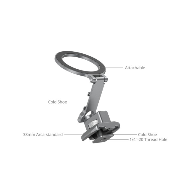 S důrazem na kompatibilitu obsahuje otvory se závitem 1/4"-20, úchyty cold shoe, rozhraní typu Arca a lišty NATO, což umožňuje bezproblémovou montáž příslušenství, jako jsou videosvětla, mikrofony a magická ramena. Rychloupínací systém MagSafe umožňuje rychlou montáž a demontáž, zatímco horní čep nabízí beznástrojové nastavení sklonu o 270° a spodní čep umožňuje panoramatické otáčení o 360° a nastavení sklonu o 240°. Jeho elegantní skládací konstrukce zajišťuje snadnou přepravu a skladování.