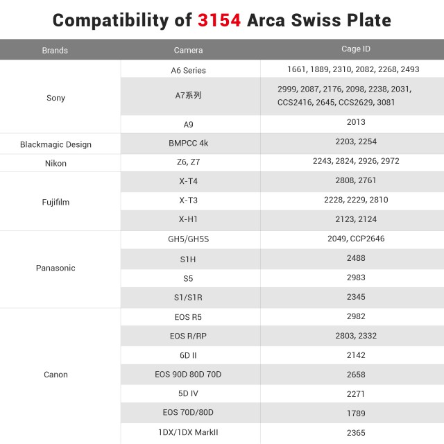 Rychloupínací destička SmallRig typu Arca pro DJI RS 2 a RSC 2 Gimbal 3154 je určena k upevnění na klec kamery pomocí dvou šroubů 1/4"-20, aby se vešla do gimbalů RS 2 a RSC 2 a vyřešila problém s kroucením, který původní destička Arca umožňuje upevnit na klec pouze jedním šroubem 1/4. Oproti původní destičce Arca je destička 3154 prodloužena o 10 mm a zvětšuje rozsah pro levé a pravé nastavení pro upevnění kamer speciálních tvarů, jako je například kamera BMPCC 4K vybavená klecí.