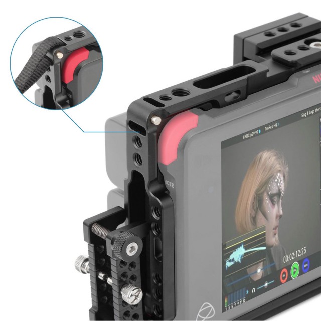 Aby sa zmiernili starosti s teplom, ktoré vzniká pri pripájaní k monitoru, zadná časť klietky pomôže monitoru odvádzať teplo. Je tiež vybavená svorkami HDMI na upevnenie kábla HDMI pomocou skrutiek a otvory so závitom 1/4" a 3/8" sú prístupné pre magické ramená. Okrem toho obsahuje zámok na uchytenie SSD, ktorý zabraňuje pádu SSD pri odpojení. Okrem toho sú pre pohodlie navrhnuté otvory na ramenný popruh.