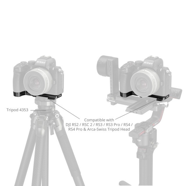 Tato deska je vybavena vestavěným otvorem se závitem 1/4"-20 v základně a nabízí všestranné možnosti rozšíření, například připojení gripu pro fotografování (ID 4551). Integrovaná rychloupínací destička Arca-Swiss navíc umožňuje přepínání mezi stativy typu Arca a stabilizátory DJI RS2 / RSC 2 / RS3 / RS3 Pro / RS4 / RS4 Pro, což usnadňuje snadný přechod mezi fotografováním z ruky, stabilizátorem a stativovým nastavením.
