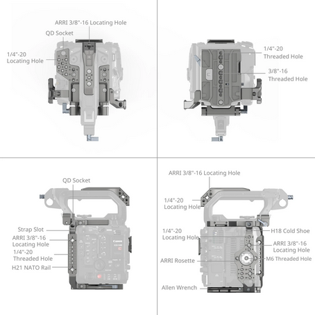 SmallRig Basic Cage Kit pro Canon C400 je ideální pro filmaře a kameramany, kteří potřebují flexibilní a efektivní řešení pro montáž. Díky rozsáhlé montáži příslušenství, rozšířené podpoře rukojetí a spolehlivé integraci napájení je tato sada ideální pro dlouhé natáčení a náročné produkční prostředí.