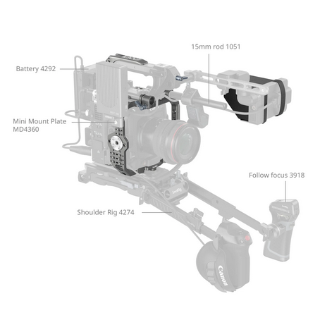 Pro integraci napájení a příslušenství obsahuje sada Basic Cage Backplate sýrovou desku pro montáž monitorů nebo baterií s V-mountem, která vám zajistí potřebné napájení pro udržení fotoaparátu v chodu po celý den. Sada se navíc dodává se sluneční clonou LCD, která je navržena pro zlepšení viditelnosti v jasném prostředí a usnadňuje sledování záběrů.