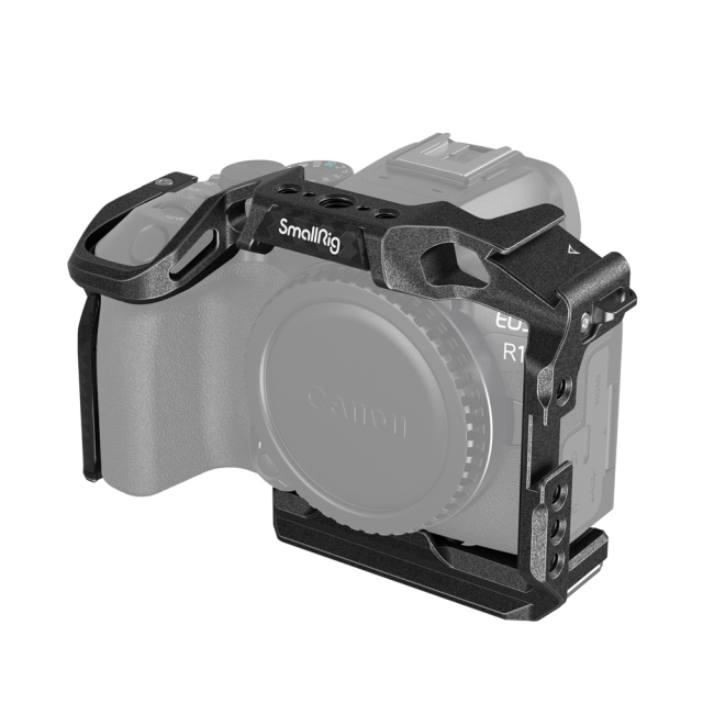 SmallRig klec "Black Mamba" pro Canon EOS R10 4004 je navržena tak, aby poskytovala ochranu a více bodů pro upevnění příslušenství. Tato klec se zamyká jedním šroubem 1/4"-20 ve spodní části a jedním bočním zamykacím adaptérem na obou stranách, je vybavena silikonovými podložkami, které zabraňují poškrábání, a celá je ve stylu "Black Mamba", který umožňuje plný přístup ke všem ovládacím prvkům fotoaparátu. Dodává se také s otvory se závitem 1/4"-20 a polohovacími otvory ARRI 3/8"-16 pro boční rukojeť 2093 a 3814, horní rukojeť 3786 a 3765, magické rameno 2070, držák monitoru 2903; horní a boční vestavěné držáky pro upevnění mikrofonu a LED světla; lišty NATO pro boční rukojeť 3260 a 3813; a otvory pro popruh na ruku 3848 a ramenní popruh fotoaparátu PSC2428. Rychloupínací destička Arca-Swiss ve spodní části podporuje stabilizátor DJI RS 2/RSC 2 a stativ Arca-Swiss, což umožňuje rychlé přepínání mezi snímáním z ruky, stabilizátorem a stativem. Na spodní straně je zabudovaná zásuvka QD pro připojení rychloupínacího popruhu. Kromě toho je součástí balení oboustranný klíč pro snadnou demontáž.