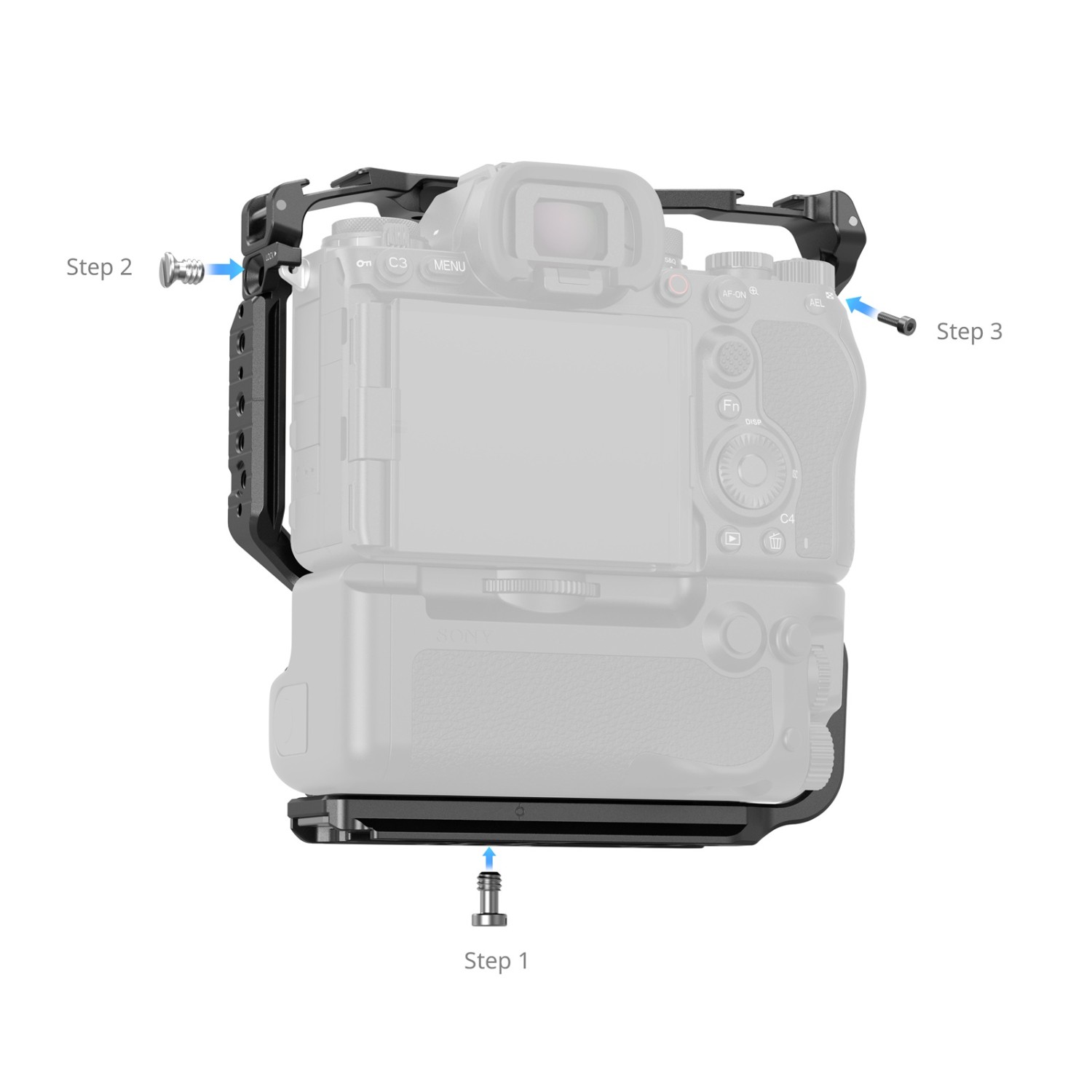 Klece SmallRig pro Alpha 1 II a Alpha 9 III s vertikální rukojetí VG-C5 5908 jsou navrženy tak, aby poskytovaly robustní ochranu a univerzální možnosti upevnění pro vaši kameru. Jsou bezpečně upevněny pomocí šroubu 1/4"-20 ve spodní části a dvou šroubů M2,5 po stranách, s integrovanými silikonovými podložkami, které zabraňují poškrábání. Klec zachovává plný přístup ke všem tlačítkům fotoaparátu, portům, slotům pro karty a přihrádce na baterie.