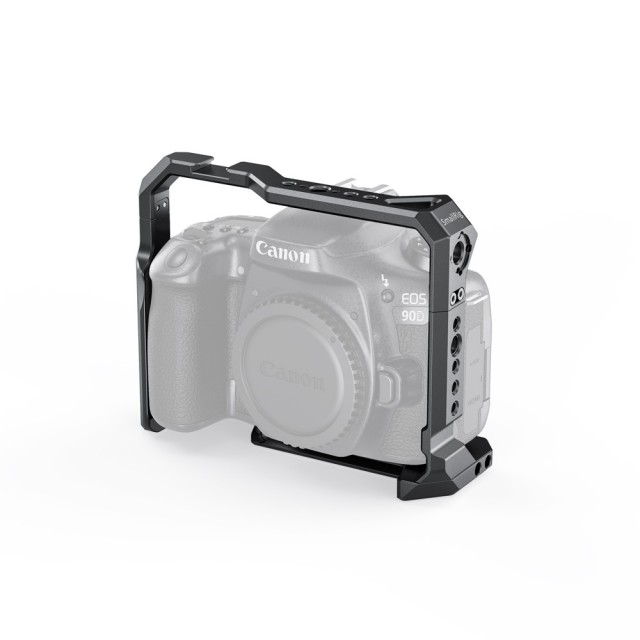 SmallRig Cage for Canon EOS 90D 80D 70D Camera CCC2658 is a formfitting full cage designed to provide protection and accessory mounts for your camera. The cage secures to the bottom of camera via a 1/4”-20 screw and features an anti-twist pin for further secure to prevent twisting. Featuring multiple 1/4”-20, 3/8”-16 and ARRI 3/8”-16 accessory threads for accessories, such as Top Handle 2165, Side Handle 2093 and Monitor Mount BSE2348. The cage integrates with a cold shoe on the top for microphone and light.