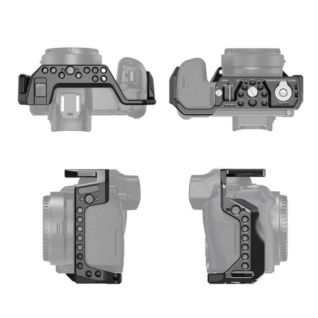 je tvarově přiléhající plná klec navržená tak, aby poskytovala ochranu a úchyty pro příslušenství pro váš fotoaparát. Klec se připevňuje ke spodní části fotoaparátu pomocí šroubu 1/4"-20 a je vybavena dvěma kolíky proti přetočení. Je vybavena několika otvory se závity 1/4"-20 a 3/8"-16, závity pro příslušenství ARRI a studenou botkou, která umožňuje montáž příslušenství. Můžete například připevnit horní rukojeť SmallRig 2165 nebo dřevěnou boční rukojeť SmallRig 2093 pro natáčení z ruky; připevnit rameno SmallRig Ball Head Magic Arm 2070 nebo držák monitoru SmallRig 1842 pro připojení monitoru. Spolupracuje s kabelovou svorkou SmallRig 1822, která chrání kabel HDMI a port. Pokud používáte adaptér pro uchycení objektivu Canon EF-EOS R, můžete použít SmallRig BSA2696 pro podepření uchycení a odlehčení tlaku od těžkého objektivu. Klec je navíc vybavena vestavěnou destičkou Arca Swiss QR a plochým šroubovákem na spodní straně.