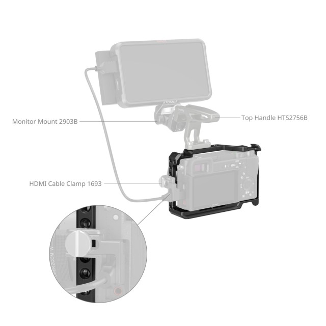 Klec SmallRig pro Sony A6100 / A6300 / A6400 / A6500 CCS2310C je navržena tak, aby chránila fotoaparát a poskytovala více rozšiřujících rozhraní. Bezpečně zajišťuje fotoaparát jedním šroubem 1/4"-20 ve spodní části a jedním šroubem M2 na levé straně, čímž zajišťuje stabilitu bez vychýlení. Klec je vybavena několika otvory 1/4"-20, polohovacími otvory ARRI 3/8"-16 pro upevnění příslušenství, jako je horní rukojeť (ID 3765) a boční rukojeť (ID 4016) pro snímání z ruky, pomoc při ostření, zvýšení stability snímání a umožnění rozšíření monitoru pomocí horního polohovacího otvoru ARRI pro upevnění držáku monitoru (ID 2903B).