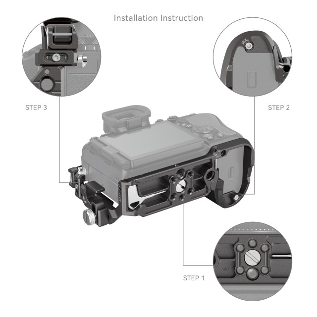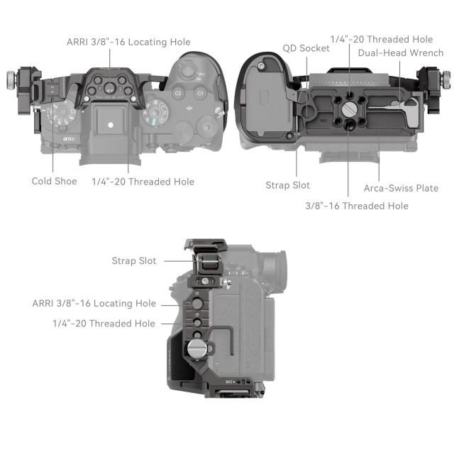 Klec SmallRig pro Sony Alpha 9 III 4533 je navržena tak, aby poskytovala ochranu fotoaparátu a rozšíření o příslušenství. Tříbodový systém zajištění proti vychýlení pevně zajišťuje fotoaparát Alpha 9 III pomocí polohovacích kolíků, šroubu 1/4"-20 na spodní straně a šroubu M2,5 na levé straně. Zefektivněná konstrukce klece zajišťuje nerušený přístup k tlačítkům a poskytuje pohodlnější používání.