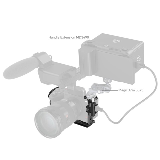 otvory se závitem 1/4"-20, polohovací otvory ARRI 3/8"-16, úchyty pro studenou botku, lišty NATO, port QD pro rukojeť, mikrofon, světlo LED, monitor, popruh na ruku atd.