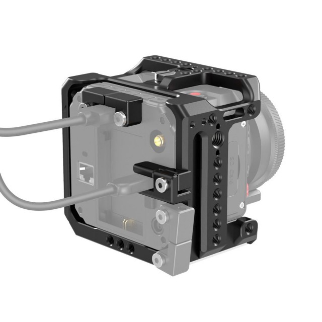 Klec SmallRig pro Z CAM E2C CVZ2372 je navržena tak, aby poskytovala ochranu a montážní závity pro příslušenství, jako je monitor, mikrofon a rukojeti. Klec se k fotoaparátu připevňuje třemi 1/4" šrouby, jedním nahoře a dvěma dole, aby se zabránilo zkroucení. Je vybaven několika polohovacími otvory 1/4"-20 a Arri 3/8" pro upevnění příslušenství, jako je Cold Shoe 2260, horní rukojeť 2165 a držák monitoru 2294. Obě strany se integrují s lištou Nato Handle 2187 a Magic Arm 2116. Kromě toho má na horní straně otvory pro popruh na přenášení. Ve spodní části je zabudovaný plochý šroubovák a šestihranný klíč pro rychlou instalaci. Podle vašich potřeb je k dispozici podpěra adaptéru objektivu a svorka kabelu HDMI a USB.