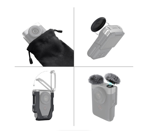 Vylepšete svůj fotoaparát Canon PowerShot V10 pomocí sady SmallRig Cage Kit, lehké klece z kompozitních vláken o hmotnosti 42 g, která obsahuje čtyři závity 1/4"-20, dvě studené patky, dvě opakovaně použitelné chlupaté protivětrné clony (snížení hluku větru až o 20 dB), dvěma adaptéry studené patky, silikonovou krytkou…