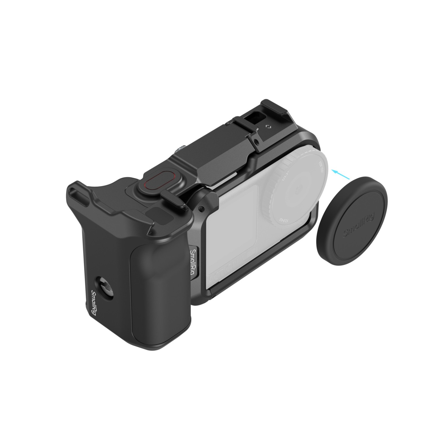 Otevřená spodní část klece umožňuje plný přístup k oboustrannému rychloupínacímu držáku kamery, díky čemuž je kompatibilní s oboustranným rychloupínacím adaptérem SmallRig (ID 5890) a oboustranným rychloupínacím adaptérem DJI.