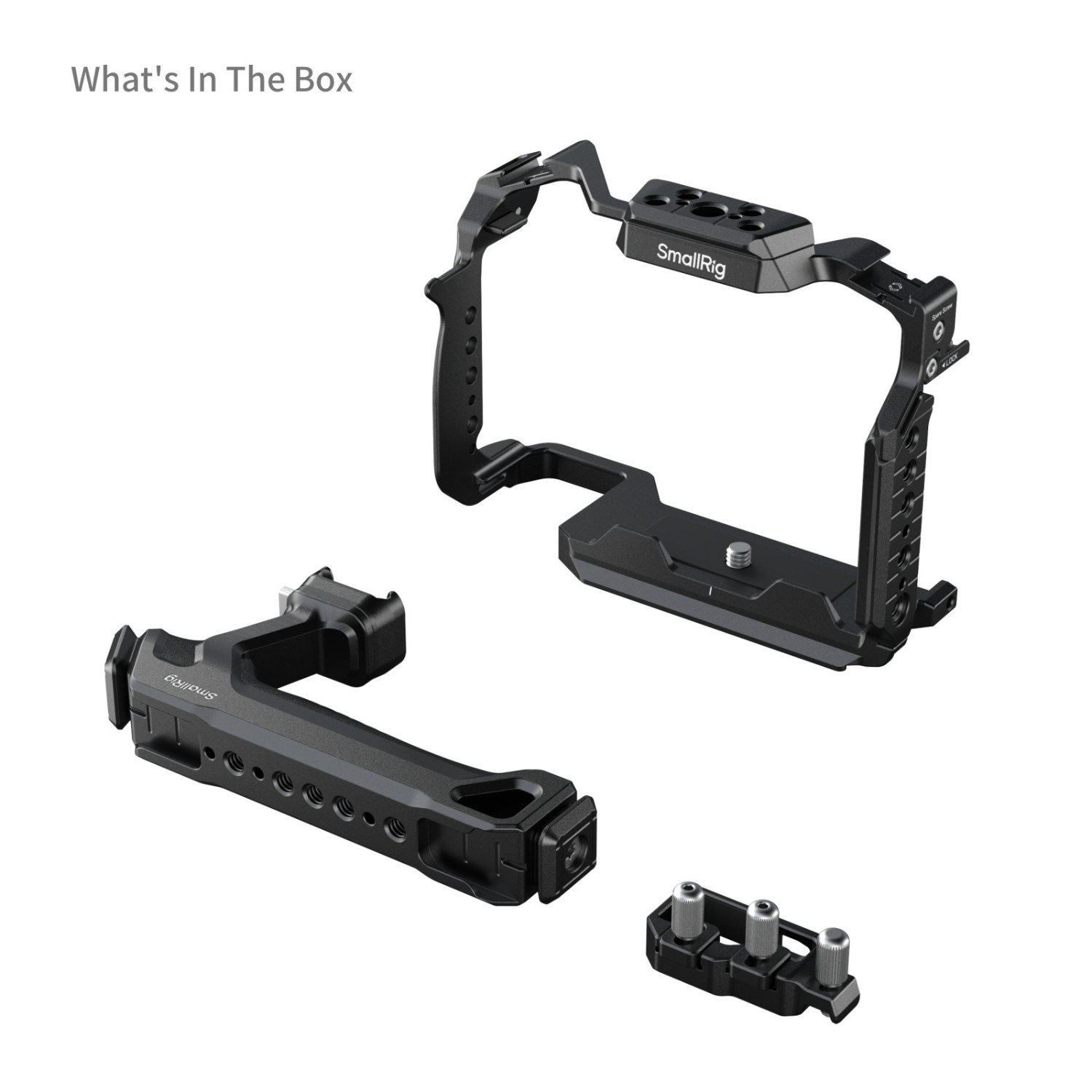 Sada SmallRig Cage Kit pro Panasonic G9 II / S5 II / S5 IIX 5752 je navržena tak, aby usnadňovala ruční natáčení a připevňování příslušenství. Obsahuje klec, svorku pro kabely HDMI a USB-C a horní rukojeť, která je ergonomicky navržena pro lepší uchopení a připojuje se ke kleci pomocí svorky NATO. Svorka pro kabely, která se utahuje pomocí šroubu, umožňuje připevnit kabely HDMI a USB-C současně. Mezi body pro připevnění příslušenství patří otvory se závitem 1/4"-20, které podporují boční rukojeť 3323; držáky cold shoe jsou vhodné pro držák SSD 5196, mikrofon, LED video světlo, monitor atd.; a otvory ARRI 3/8"-16 jsou vhodné pro držák monitoru 2903B. Na levé straně je také kolejnice HawkLock H21 NATO pro boční rukojeť 4485 a otvory pro popruh na obou stranách, které jsou kompatibilní s ručním popruhem. Kromě toho je součástí balení magnetický klíč pro snadnou demontáž a montáž.