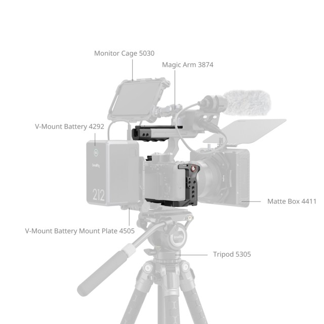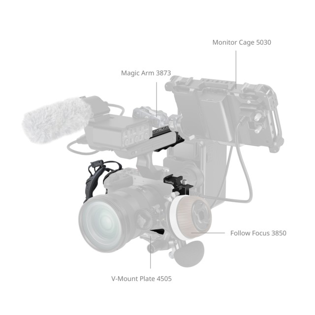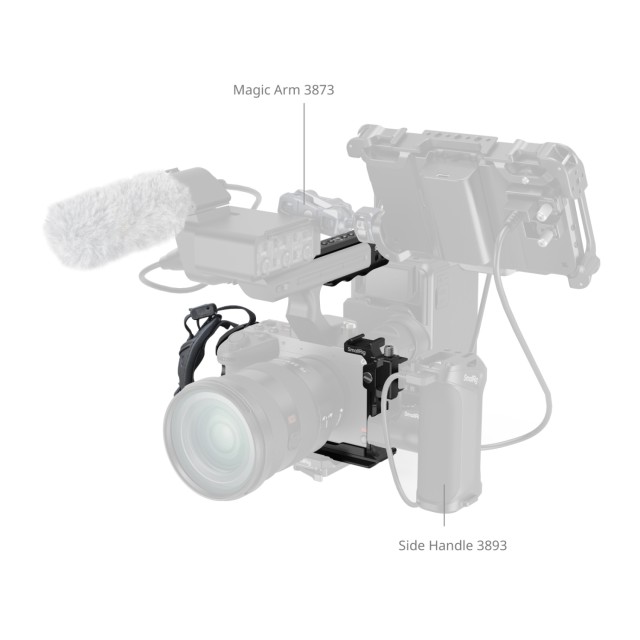 Odnímatelná lišta NATO (horní deska): Kompatibilní s horní rukojetí XLR Sony nebo otočnou horní rukojetí SmallRig (ID 4152) pro bezproblémové ovládání EVF