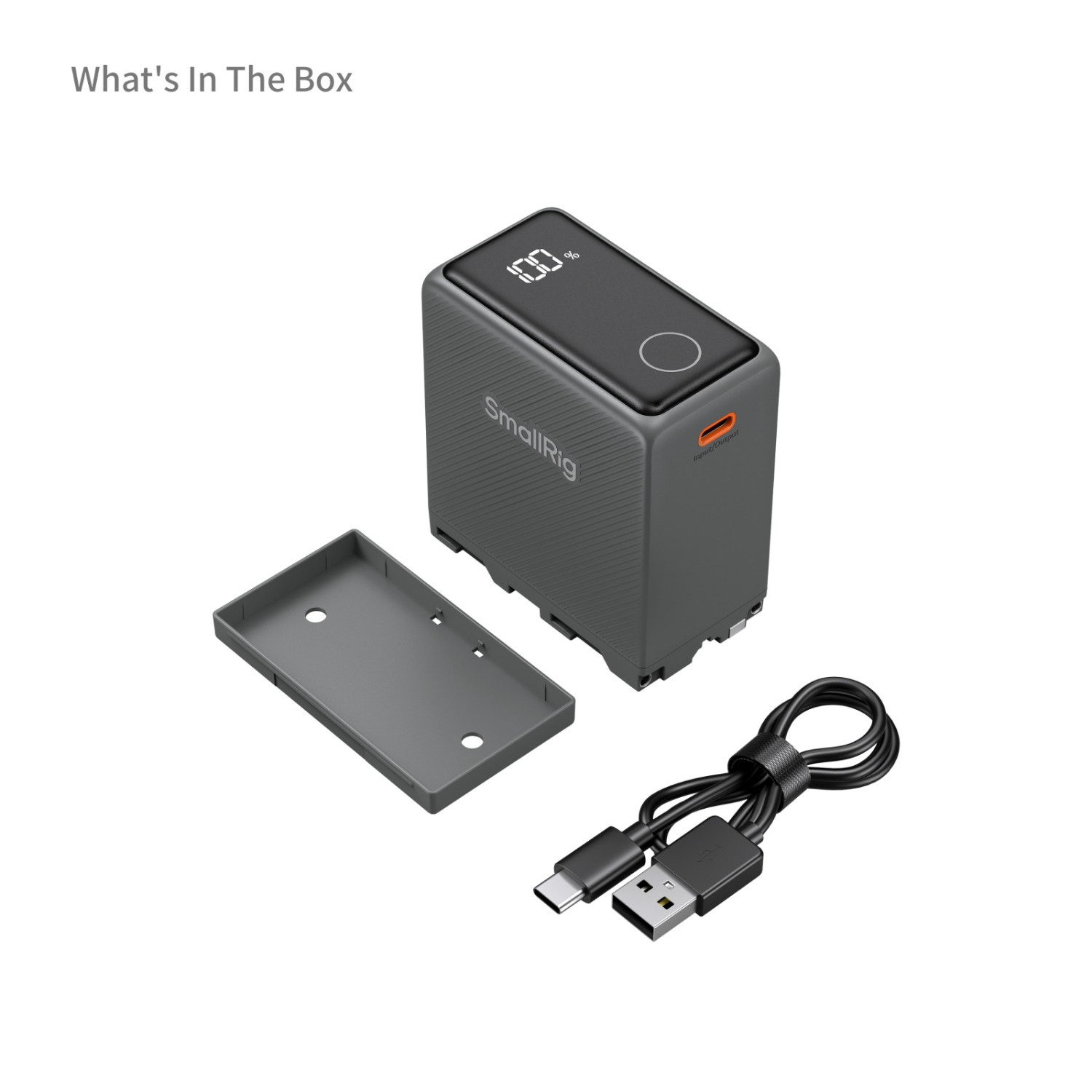 SmallRig F970-LT Power Bank pro NP-F970 (5729AC) / SmallRig USB-C dobíjecí baterie pro fotoaparáty pro NP-F970 (5729) je inteligentní baterie s přímým nabíjením přes USB-C, odolná vůči nízkým teplotám, s vysokou kapacitou a vysokým výkonem. S jmenovitou kapacitou 7500 mAh (55,5 Wh) poskytuje delší dobu provozu, aby splnila požadavky na napájení při delších natáčecích sezeních, a zároveň podporuje spolehlivé vybíjení při teplotách až do -40 °C.