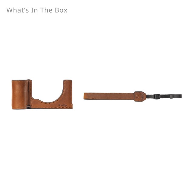 2. Součástí sady je řemínek na zápěstí z pravé kůže pro pohodlnou a spolehlivou přepravu fotoaparátu.