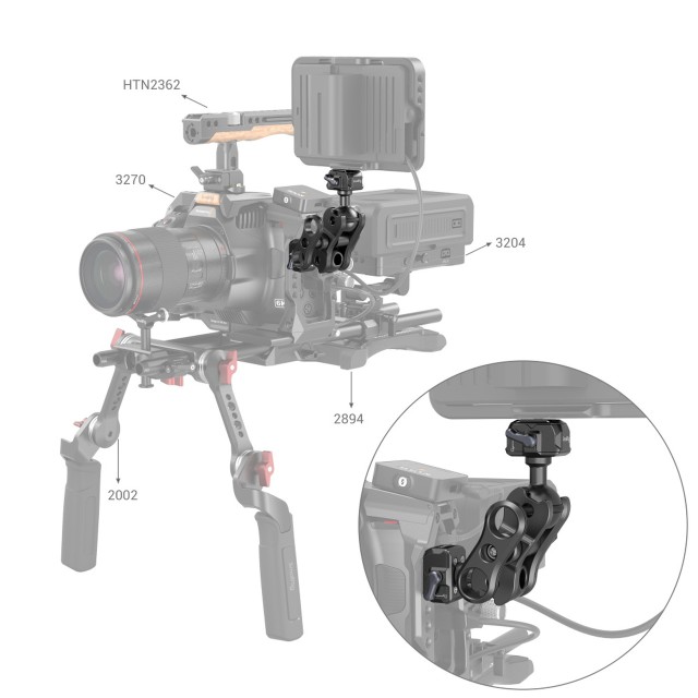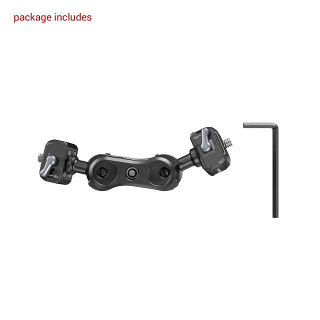 SmallRig Magic Arm s rychloupínací ball head 3515 je rychloupínací držák, který má na obou koncích otvory pro šrouby se závitem 1/4"-20 a podložky pro zvýšení tření a zabránění poškrábání. Její rychloupínací kulová hlava je kompatibilní se zařízeními se závitem 1/4"-20, jako jsou fotoaparáty, monitory, klece, montážní desky atd., a rychloupínací destička může být vertikálně a stabilně zasunuta do základní desky, což nezpůsobuje žádné vychýlení. Magic arm lze snadno zamknout a odemknout. Kulová hlava spolu se svorkou umožňuje univerzální nastavení ramene. Je odnímatelný, vyměnitelný. Je kompatibilní s příslušenstvím 2132, 2133, 2134, 2114, 2108, BUM2383, 2211, můžete si vybrat a získat výše uvedené příslušenství podle svých potřeb. Toto magic arm, které unese až 5 kg, bezpečně uzamkne zařízení během nahrávání.
