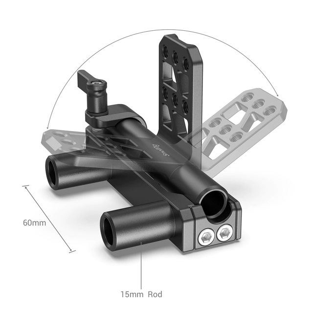 SmallRig Dual 15mm Rod Battery Hinge MD2802 je určen pro pohodlnější montáž baterie na plošinu. Je vybaven standardní dvojitou 15mm tyčí, kterou lze snadno připevnit k railbloku nebo ramenní podložce pomocí svorky s dvojitou tyčí, jako je například VCT-14 Shoulder Plate 1954. Měla by být použita s bateriovou deskou, jako je například V Mount Battery Plate 1846 a MD2801 s baterií. Úhel závěsu je nastavitelný a lze jej libovolně připevnit k ramenní desce. Kromě toho je na závěsu řada otvorů se závitem 1/4-20 pro montáž dalšího příslušenství.