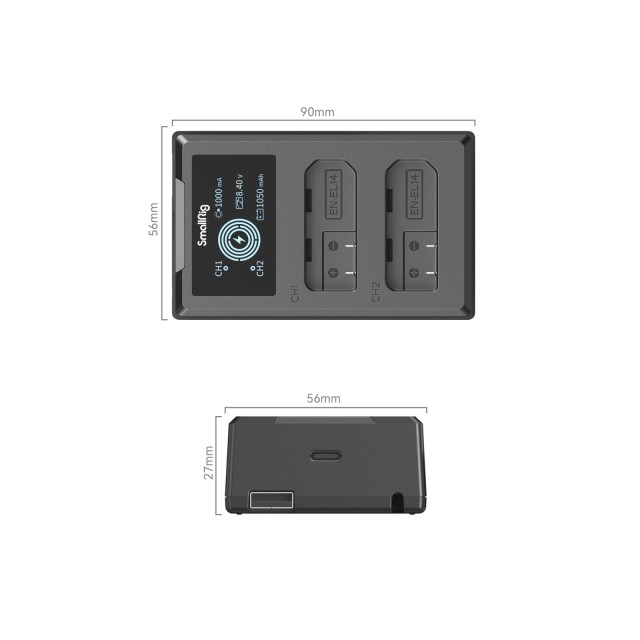 Nabíječka baterií SmallRig EN-EL14 pro fotoaparáty 4082 je vyrobena z vysoce kvalitního ohnivzdorného materiálu ABS+PC. Povrch je matný, odolný vůči vysokým teplotám, příjemný na dotek a odolný. Vestavěná přihrádka na baterie má stejnou velikost jako originální baterie fotoaparátu, přesně zapadá do přihrádky na baterie fotoaparátu a instaluje se bez zasekávání. Nabíječka využívá dvouslotovou konstrukci, která umožňuje nabíjet dvě baterie současně.