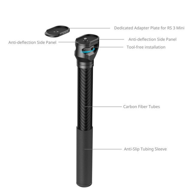 Prodlužovací rameno SmallRig pro stabilizátory DJI je speciálně navrženo pro modely RS 4, RS 3 a RS 2 a nabízí bezpečné a lehké řešení pro montáž příslušenství. Je vyrobeno z uhlíkových vláken a zajišťuje odolnost, aniž by zvyšovalo hmotnost. Protiskluzová rukojeť s polstrováním zvyšuje stabilitu a usnadňuje dosažení přesných záběrů z různých úhlů.