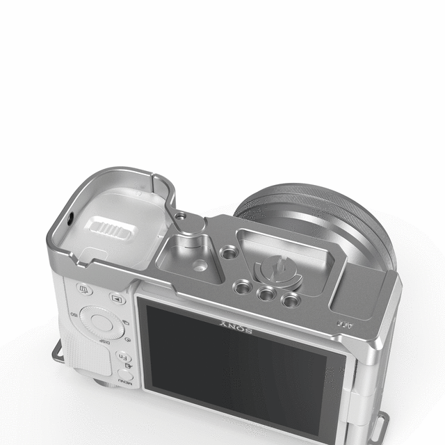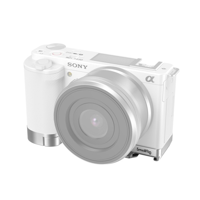 Prodlužovací grip SmallRig pro Sony ZV-E10 (stříbrný) 3524 je navržen tak, aby zlepšil zážitek z držení a poskytl body pro upevnění příslušenství. Základní deska se k fotoaparátu připevňuje pomocí šroubu 1/4''-20 s kroužkem D bez použití nářadí. Spodní část je vybavena integrovanou rychloupínací destičkou typu Arca, která umožňuje rychlé upevnění na stativ. Spodní část je vybavena několika otvory se závitem 1/4''-20, které jsou kompatibilní s rychloupínací destičkou DJI RS 2 a RSC 2 (horní). Pravá strana je vybavena závitem 1/4" -20 pro montáž stativu pro vertikální snímání a stále zachovává přístup k výklopné obrazovce a kabelovým portům. Je vybavena cold shoe paticí na spodní straně, která umožňuje montáž mikrofonu nebo světla, vzdálenost od destičky Arca ke studené botce je dobře vyzkoušená, takže můžete namontovat stativ Arca a bezdrátový go zároveň. Dvířka baterie jsou vybavena páčkou pro otevírání a zavírání a otočnou konstrukcí pro větší odolnost a stabilitu, což zajišťuje lepší zážitek z držení bez vlivu na výměnu baterie a celkovou kondici.