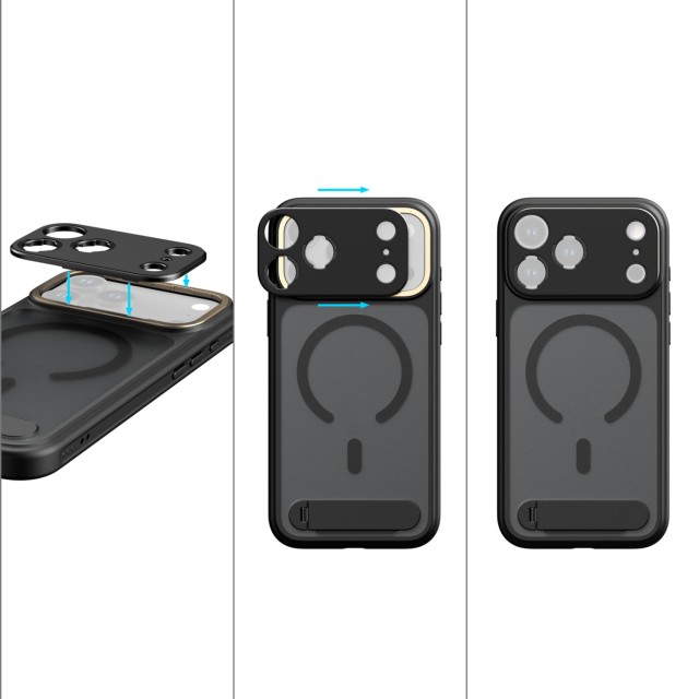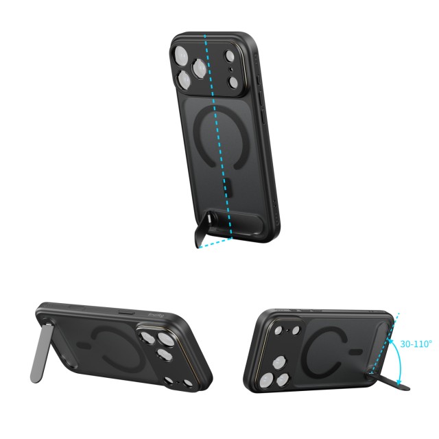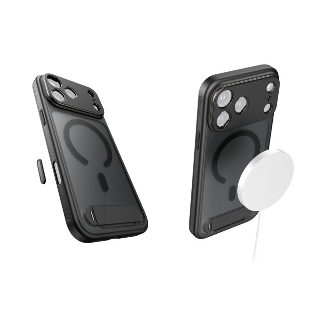 Pouzdro je navrženo pro optimální funkčnost a je přesně sladěno s ovládacím tlačítkem fotoaparátu iPhone, což poskytuje citlivou hmatovou odezvu a zároveň zajišťuje komplexní ochranu. Integrovaná multiúhlová podpěra (30°-110°) umožňuje snadný přechod mezi orientací na výšku a na šířku. Vestavěné magnety MagSafe zajišťují univerzální kompatibilitu s příslušenstvím MagSafe, zatímco boční otvor pro poutko usnadňuje připevnění poutka na zápěstí nebo ramenního popruhu pro pohodlné přenášení na cestách.
