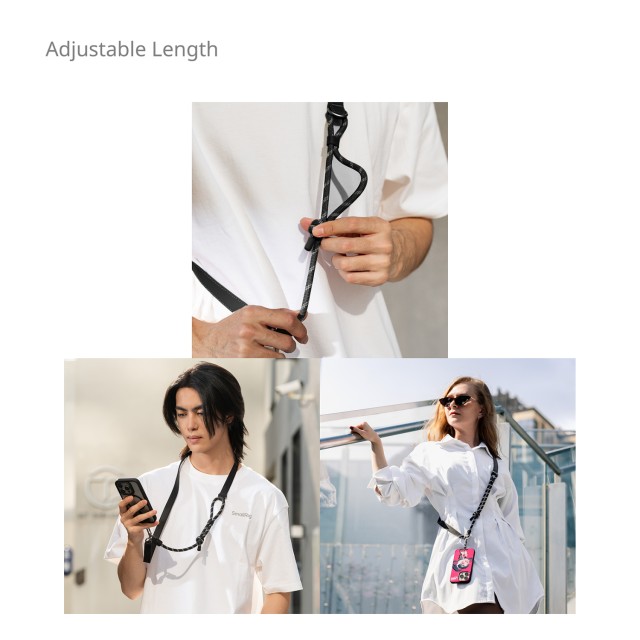SmallRig FilMov Phone Shoulder Strap je funkční, stylová a ekologická šňůrka na telefon s nastavitelnou délkou pro různé styly. Je vyroben z pravé kůže a nylonového lana, je odolný a zároveň lehký. Minimalistický design peruánského uzlu umožňuje nastavení délky, vhodné pro nošení kolem krku nebo přes tělo. Je vybaven víceúčelovým závěsným bodem a spodním kovovým háčkem pro připevnění příslušenství, jako jsou pouzdra AirPods, klíče nebo přívěsky.