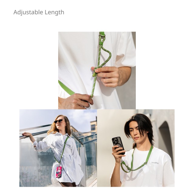 SmallRig FilMov Phone Shoulder Strap je funkční, stylová a ekologická šňůrka na telefon s nastavitelnou délkou, která se hodí k různým stylům. Je vyroben z pravé kůže a nylonového lana, je odolný a zároveň lehký. Minimalistický design peruánského uzlu umožňuje nastavení délky, vhodné pro nošení kolem krku nebo přes tělo. Je vybaven víceúčelovým závěsným bodem a spodním kovovým háčkem pro připevnění příslušenství, jako jsou pouzdra AirPods, klíče nebo přívěsky.