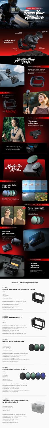 Sada filtrů SmallRig pro DJI Osmo Action 6 5896 je speciálně navržena pro DJI Osmo Action 6. Tyto filtry jsou vyrobeny z vysoce kvalitního skla Rainbow s vysokým obsahem oxidu hlinitého a nabízejí výjimečnou odolnost s vynikající odolností proti nárazům a opotřebení. Tento materiál zajišťuje silnou chemickou stabilitu pro spolehlivý výkon v různých prostředích…