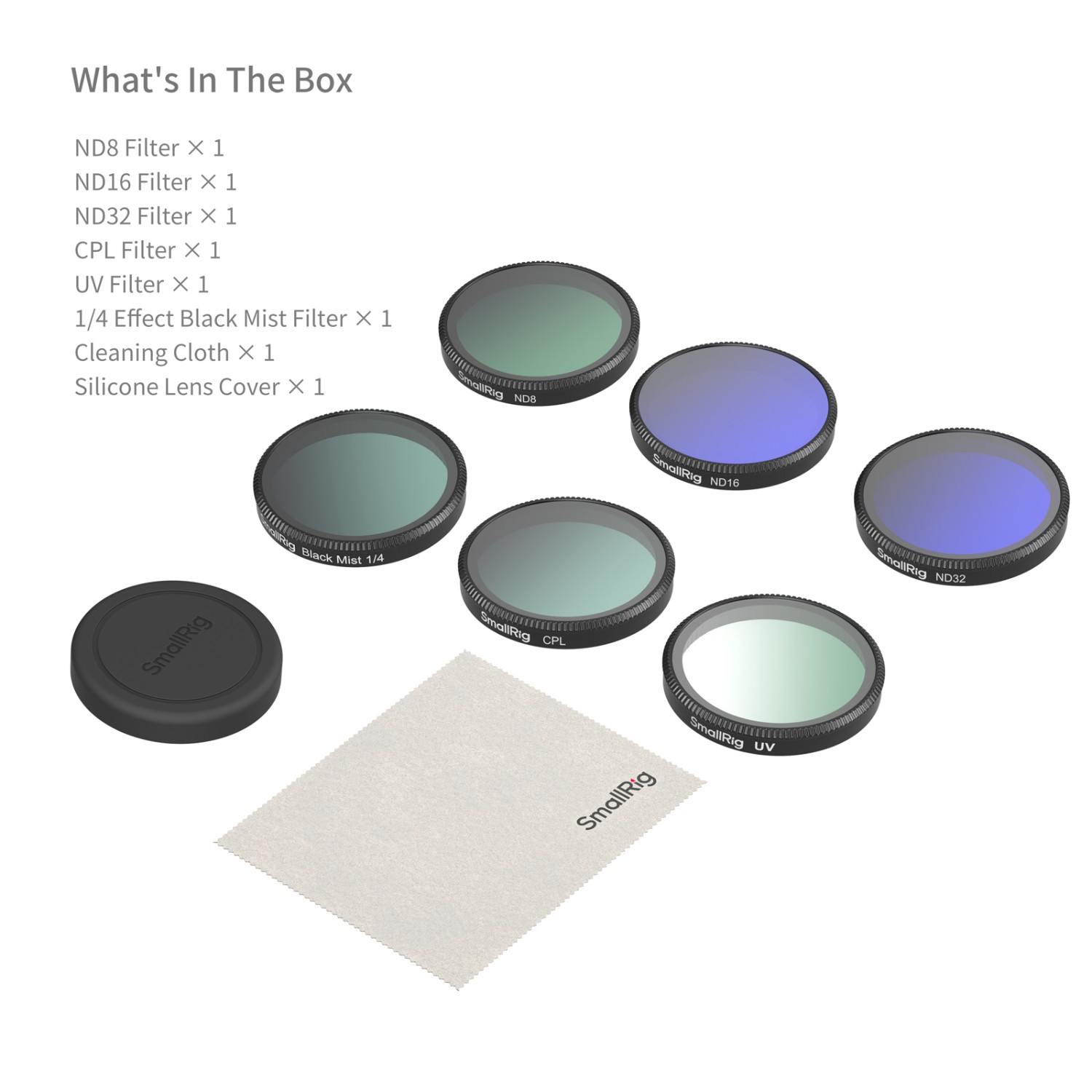Balení obsahuje filtr ND8, filtr ND16, filtr ND32, filtr CPL, filtr UV, filtr 1/4 black mist, silikonový kryt objektivu a čisticí hadřík. Sada filtrů ND poskytuje ideální redukci světla v různých prostředích a zároveň obohacuje vaše záběry živými barvami. Filtr CPL účinně eliminuje nežádoucí odrazy z nekovových povrchů, jako je voda a sklo, a zároveň zlepšuje viditelnost pod vodou a přes okna. UV filtr chrání objektiv před poškrábáním a nárazy, zatímco filtr 1/4 black mist zjemňuje jasné oblasti a vytváří snový, filmový efekt. Rychlé zacvakávací provedení umožňuje přímé připevnění bez nutnosti sejmutí objektivu, což výrazně zvyšuje efektivitu fotografování.