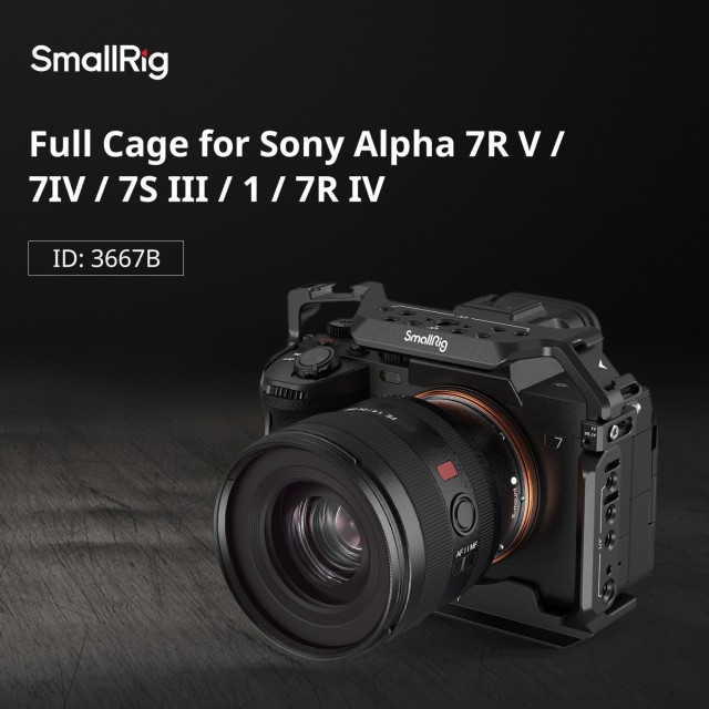 Klec SmallRig Full Cage pro Sony Alpha 7 IV/Alpha 7 S III/Alpha 1 3667 je navržena tak, aby poskytovala úchyty pro příslušenství a chránila váš fotoaparát. Součástí balení jsou dvě zajišťovací boční desky a jeden šroub 1/4"-20 ve spodní části, které zajišťují kameru a zabraňují jejímu nesprávnému nastavení. Zabudované ochranné distanční podložky po celé délce zabraňují poškrábání fotoaparátu. Klec umožňuje přístup k rozhraním, ovládacím prvkům, tlačítkům nebo baterii. V prostoru pro baterii je umístěn vřetenový klíč, který se přizpůsobuje zakřivení fotoaparátu a ponechává prostor pro pohodlné uchopení prstem. Otvory se závitem 1/4"-20, polohovací otvory ARRI 3/8"-16 a cold shoes podporují horní rukojeť 2165, boční rukojeť 2093, držák monitoru 2903, mikrofony, LED světla, monitory atd
