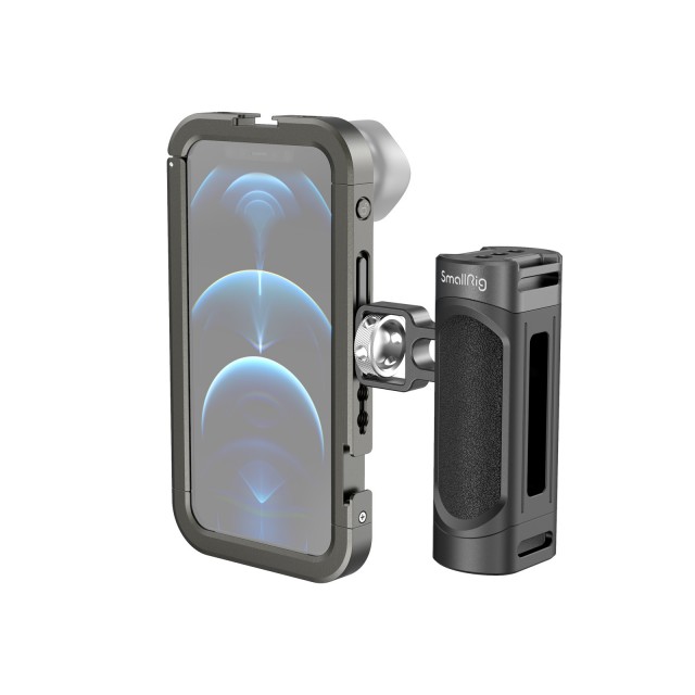 SmallRig Handheld Video Rig pro iPhone 12 Pro 3175 je dokonalý rig pro mobilní telefony a pro natáčení vlogů, mobilních filmů, reklam apod. Souprava je vybavena klecí speciálně navrženou pro iPhone 12 Pro a boční rukojetí pro stabilnější natáčení s telefonem z ruky. Je vybaven dvěma studenými zásuvkami a několika otvory se závitem 1/4 pro připojení příslušenství, jako je mikrofon, světlo LED, stativ atd. Podporuje horizontální i vertikální snímání. Držák objektivu na zadní straně umožňuje k telefonu snadno připojit externí objektiv.