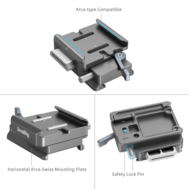 Rychloupínací destička SmallRig HawkLock H38 Arca-Swiss pro stabilizátory DJI 4639 je speciálně navržena pro stabilizátory DJI RS 2 / RSC 2 / RS3 / RS 3 Pro / RS 3 mini / RS 4 / RS 4 Pro a usnadňuje vyrovnání kamery na stabilizátorech. Tato destička umožňuje upevnit na RS 3 mini fotoaparáty, jako je Sony FX3 s objektivem 24-70 mm, Canon R5 s objektivem 24-70 mm, FUJIFILM X-T5 s objektivem 16-55 mm a LUMIX GH6 s objektivem 12-60 mm. Rychloupínací základová deska Arca-Swiss má nastavitelnou protiskluzovou konstrukci, která zabraňuje náhodnému odpojení a umožňuje efektivní přepínání mezi nastavením stativu a stabilizátoru. Rychloupínací destička Arca-Swiss navíc obsahuje konstrukci proti otáčení pro bezpečné upevnění fotoaparátu.