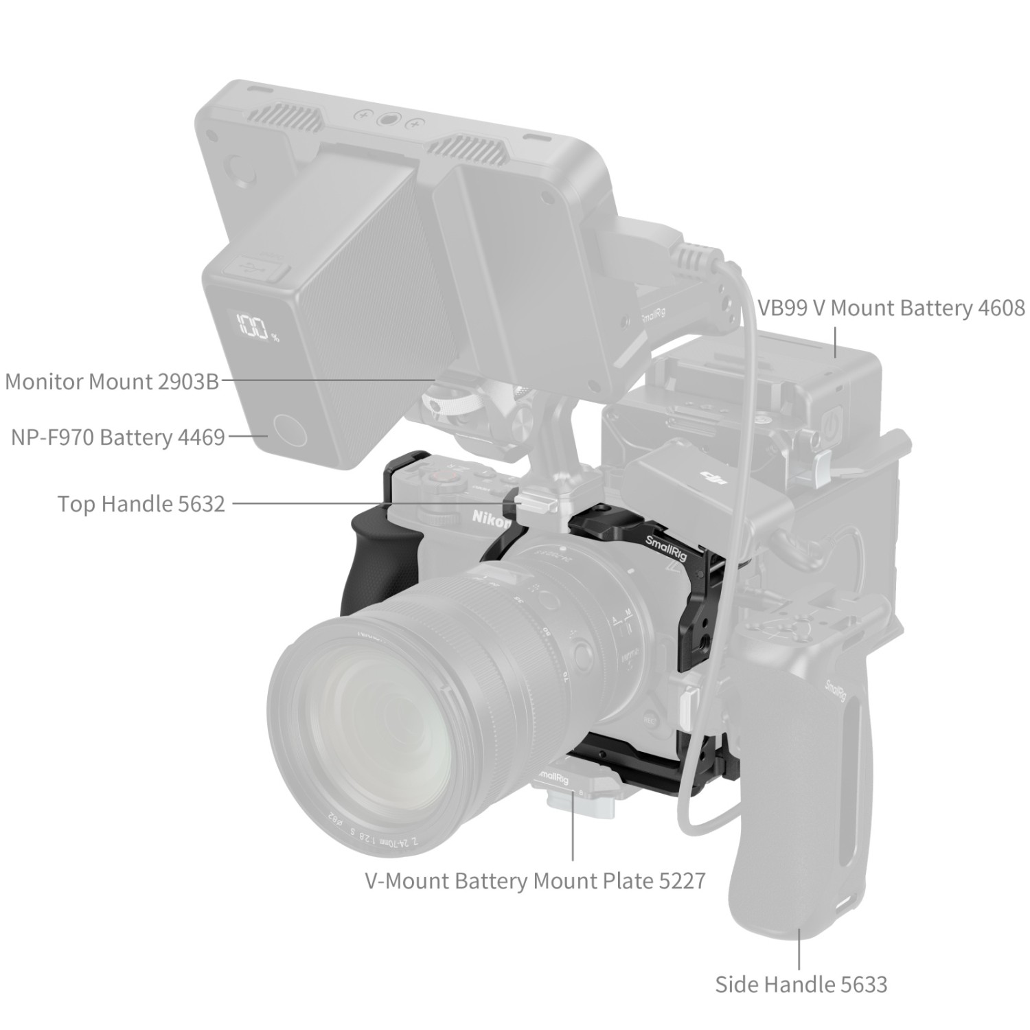 Klec nabízí rozsáhlé možnosti rozšíření, včetně otvorů se závitem 1/4"-20, polohovacích otvorů 1/4"-20 a polohovacích otvorů ARRI 3/8"-16 pro připevnění příslušenství, jako jsou horní rukojeti (ID 3765, 4927) a magická ramena (ID 5308, 4900). Jeho integrovaná rychloupínací lišta NATO „HawkLock“ podporuje kompatibilní horní rukojeti (ID 5632, 4483), boční rukojeti (ID 5633, 4485) a držáky monitorů (ID 4487). Navíc vestavěná zásuvka QD umožňuje připevnění ramenních popruhů QD (ID 4118B), stejně jako otvory pro zápěstní popruhy (ID 3848) nebo ramenní popruhy (ID 4884, 5208).