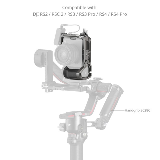 Klec obsahuje různá montážní rozhraní, včetně několika závitových otvorů 1/4"-20 a polohovacích otvorů ARRI 3/8"-16, která umožňují připevnění horních rukojetí (ID 3765, 4757) nebo bočních rukojetí (ID 4755, 4840) pro lepší stabilitu při natáčení z ruky. Držák se studenou botkou lze použít pro upevnění mikrofonů DJI MIC II nebo videosvětel. Spodní otvor se závitem 1/4"-20 lze použít pro upevnění na stolní stativy nebo stabilizátory DJI RS s rychloupínací destičkou pro DJI RS Mini. Integrovaná rychloupínací destička Arca-Swiss usnadňuje rychlé přepínání mezi režimy snímání z ruky, ze stativu a ze stabilizátoru (kompatibilní s DJI RS 2, RSC 2, RS 3, RS 3 Pro, RS 4 a RS 4 Pro). Kromě toho je k dispozici zdířka QD pro připevnění popruhů QD spolu s otvory pro popruhy na obou stranách a na spodní straně pro zápěstní popruhy (ID 3848), ramenní popruhy (ID PSC2428) a další příslušenství.